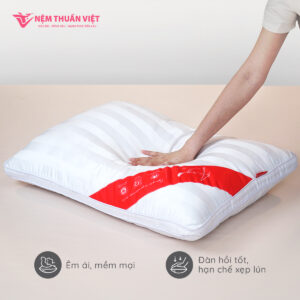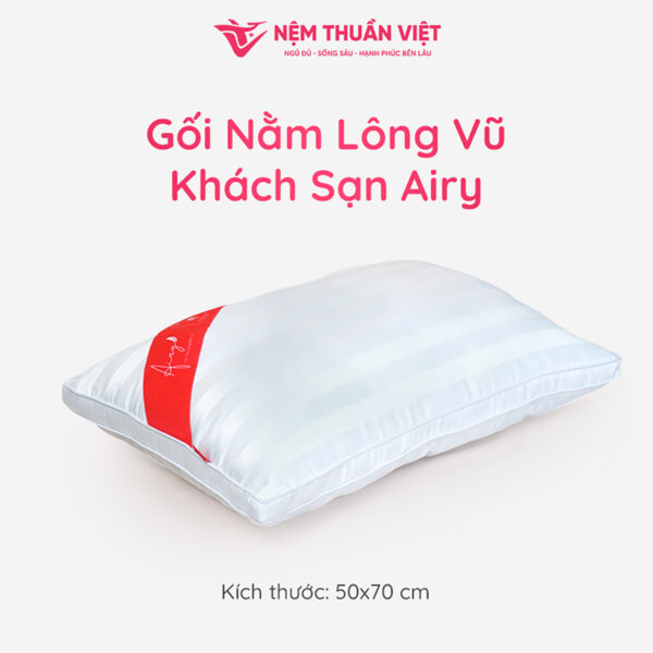 Gối nằm Lông Airy Vũ Thuần Việt sẽ lựa chọn hoàn hảo dành cho những ai yêu thích sự bồng bềnh, êm ái trong từng giấc ngủ. Airy thuộc dòng gối bán chạy của Nệm Thuần Việt sở hữu nhiều ưu điểm vượt trội êm ái, thoáng mát và giá thành vô cùng phù hợp.
